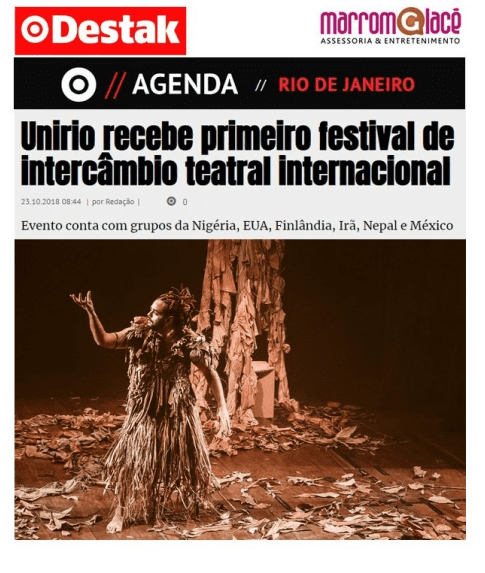 Com apoio da Universidade Federal dos Estados do Rio de Janeiro, o festival apresentou um forte viés de inclusão social. O evento incentivou a prática das artes cênicas a jovens e proporcionou a colaboração entre eles, os fortalecendo na inserção ao mercado cultural, além de criar uma ponte geracional. O festival apresentou uma extensa programação, foram: 8 mesas de debates, 12 oficinas, 7 espetáculos e 2 mostras de cenas curtas. Contando com públicos e companhias que abrangeram além da cidade do Rio de Janeiro como: Nigéria, Nepal, Iran, Finlândia, EUA e Argentina , além de representantes e companhias de Minas Gerais, São Paulo, Bahia e Rio de Janeiro, isso tudo sem nenhum patrocínio. Neste ano nosso festival atraiu um público total de 1.500 pessoas.